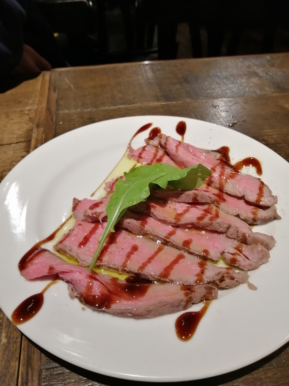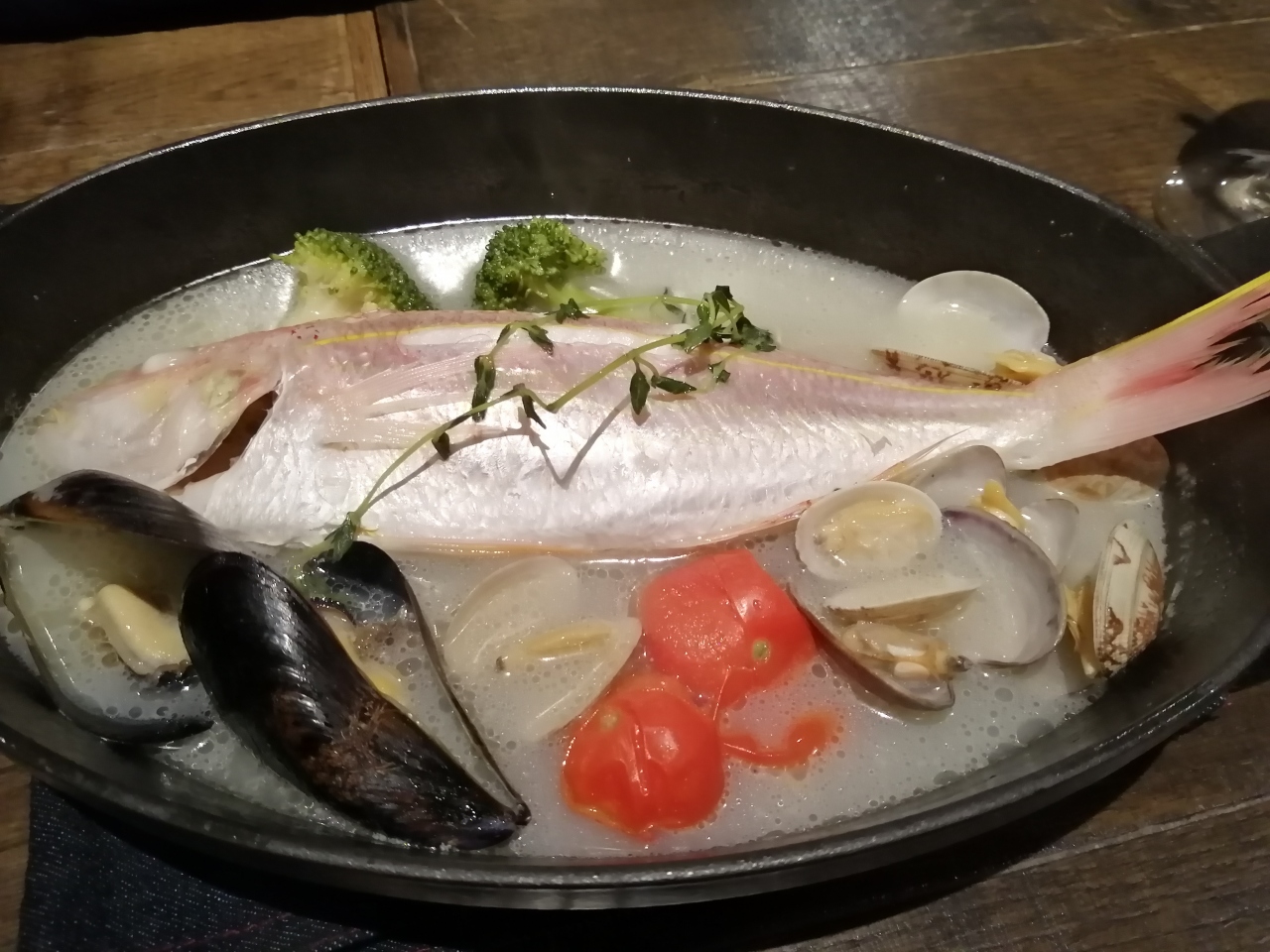 写真のアクアパッツアは約2000円。牛肉は約1500円。(2020年11月現在)