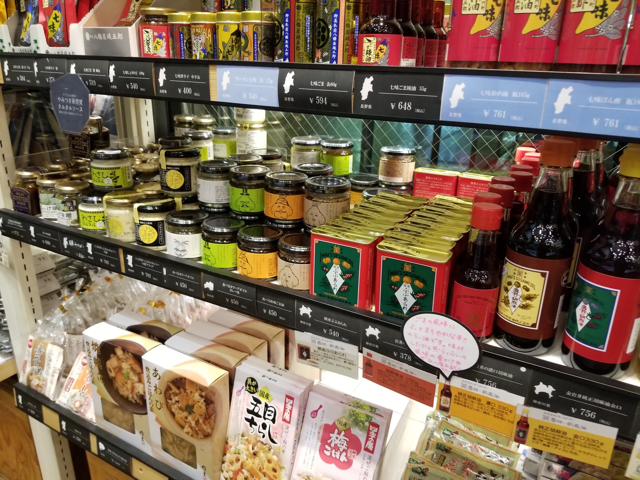 広くはないが、各地の名産品が手軽に買える。また店頭では、新鮮な農産物なども売っている。