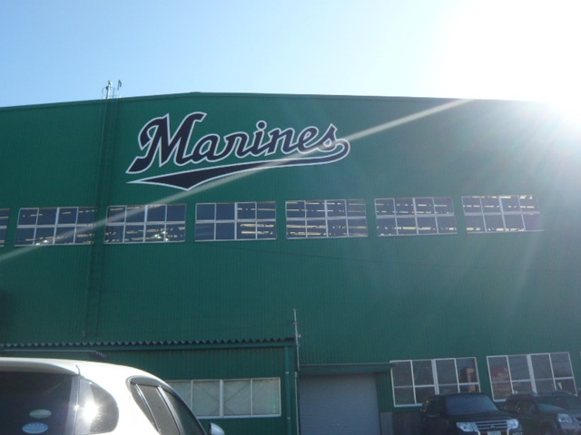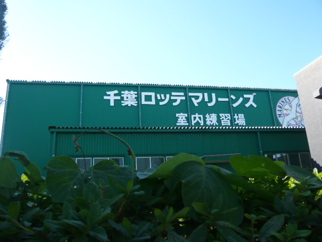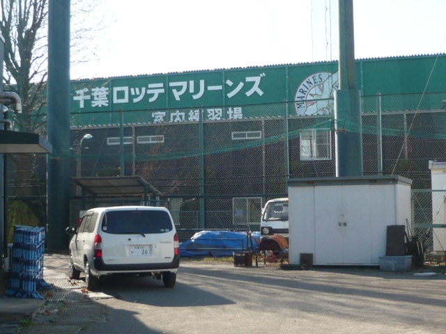 ロッテ浦和球場に隣接して、西側に、室内練習場があります。大きな練習場です。