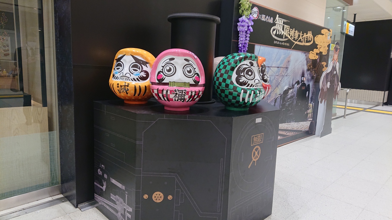 高崎の駅、ホームから改札に向かうため、エスカレーターで下に降りると…見慣れないだるまが…