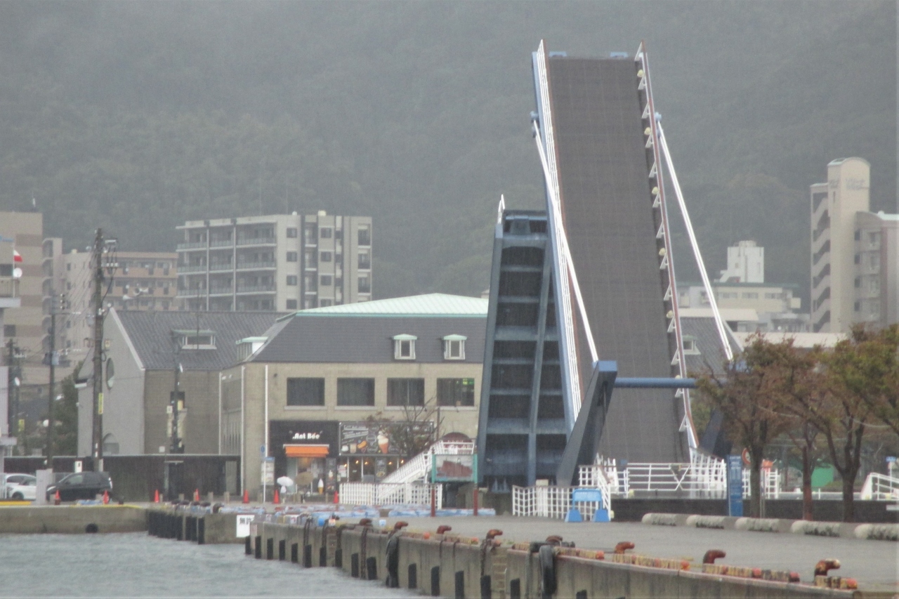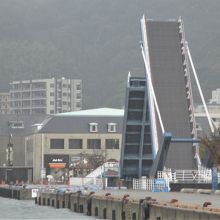 基本的には1時間に1回、00分に20分間開きます。だから何だという感じです。これを渡って観光場所の移動をしたい人を足止めしているだけの様に思います。和風の渡橋を架けておいてくれた方がレトロ地区を散策するにはぴったりの様に思います。橋を上げなければ通行できない和船の観光船が通るというのならば、まだ許せますが・・・。