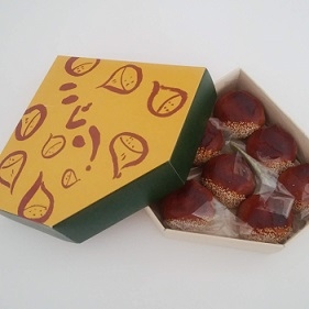 「こぐり」864円(税込)の中には小さい栗の形をしたかわいらしい半生菓子が並んでいます。目でも秋を楽しめるお菓子です。