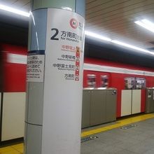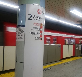 丸ノ内線の中野坂上駅にて。方南町方面へは6両編成の直通電車だけでなく三両編成の短い方南町⇔中野坂上がピストン運行していました。ホームでの乗り換えも簡単、運行本数も多く、予想していたよりも便利なエリアに感じました。