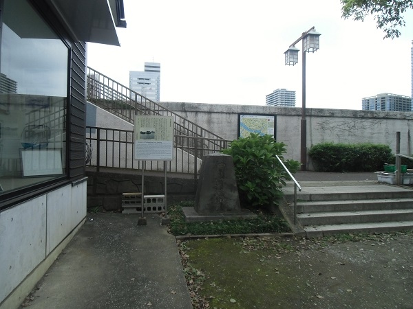 説明板によると、この島と対岸の船松町(現在の佃大橋西詰付近)との間に通された渡船が佃の渡しです。