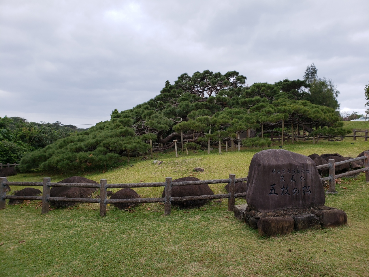 数年前に訪れたときは、夏でしたので、木々がうっそうと茂っていましたが、冬ということもあり、また、秋の台風で木々が折られたらしく、木々がまばらでしたが、立派な枝ぶりに変わりはありませんでした。立派は琉球松でした。