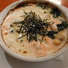 内幸町駅近く日比谷通り沿いのイタリアンのお店です。1階の店内中央にある階段を下りて行きました。おしゃれな雰囲気のお店で、ランチは日替わりメニューの他に、パスタ・ドリアのメニューがありました。ドリアを注文しましたが、チーズたっぷり熱々で、とても美味しかったです。サラダ、ドリンク、デザート(ケーキ)がセットになっていて、お得感のあるランチでした。