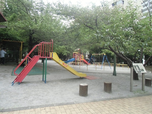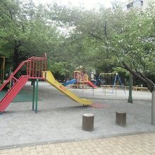 すべり台やブランコのほか、アスレチック遊具やコンビネーション遊具から、砂場、小さな子が楽しめる遊具までが公園内の片隅に設置されています。