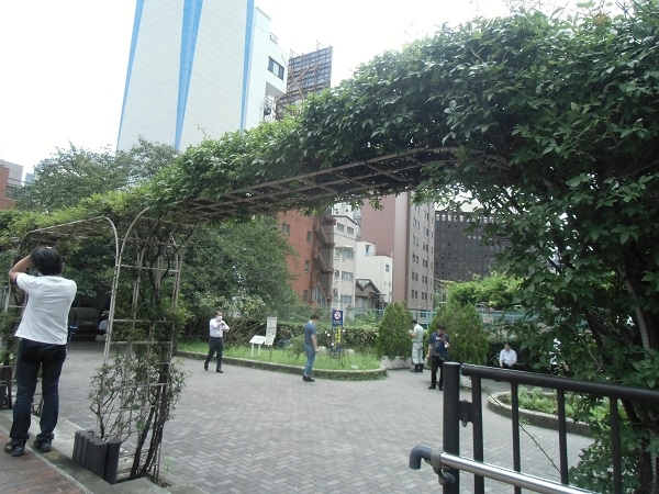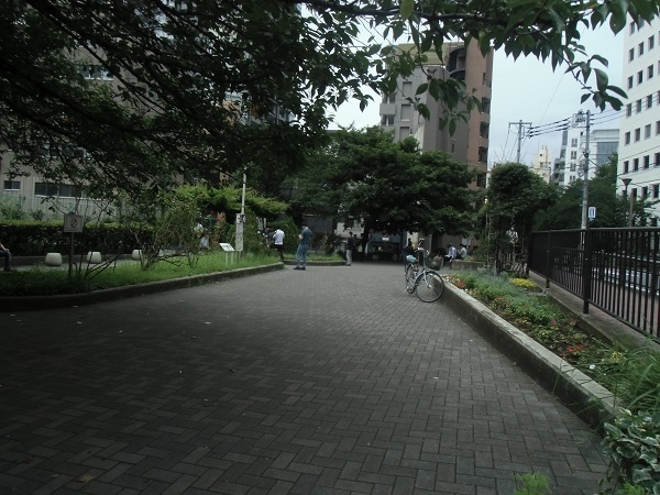 公園といっても遊具などはなく、平日の昼時だとサラリーパーソンの喫煙所化しています。