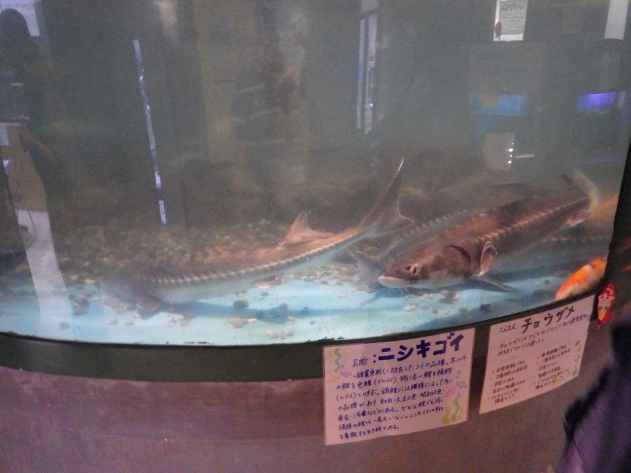 水族館のイメージとはほど遠く、ひと部屋に一般的な水槽が並んでいます。第一印象は「狭い」でしたが、手作り感のある説明書きに見入ってしまい、思いのほか長く滞在しました。淡水魚をじっくり見たのは初めてかもしれません。