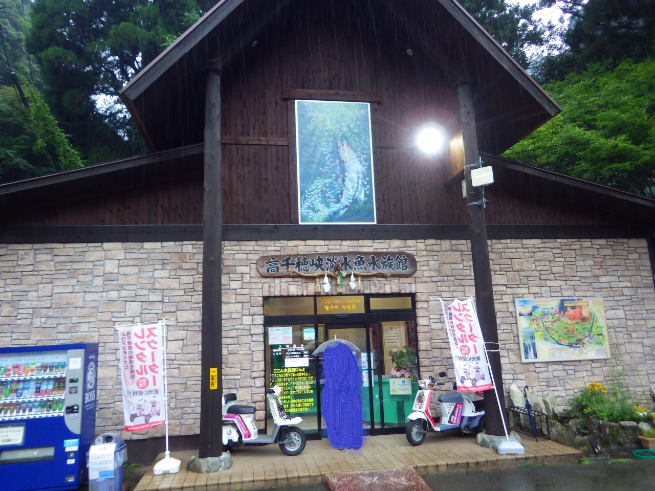 高千穂峡の遊歩道側から御橋を渡った右側にある淡水魚専門の水族館です。五ヶ瀬川や熱帯の淡水魚を展示しています。