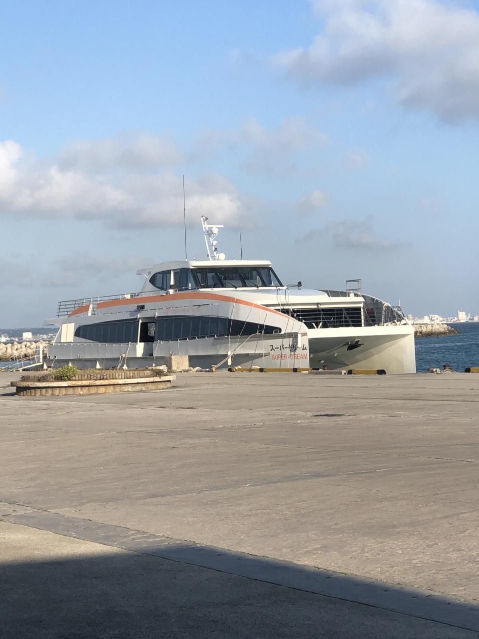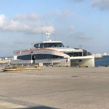 石垣ドリーム観光のツアーで西表島、由布島、竹富島に行った時に利用しました。定員200名くらいの船だったので、定期便とは違うターミナルに停泊していました。待合室には、竹富島の入場料を支払う自動販売機があり、クレジットカードが使えました。