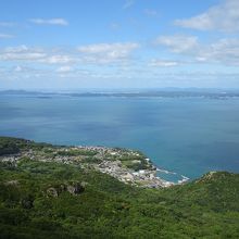 銚子渓のおさるの王国を突き進んで山を登っていくと、突然岩山になります。その岩を登ると、びっくりするほど美しい景色が見れました。小豆島の緑、瀬戸内海の海、そして空。本当に綺麗で感動的な景色です。これだけ素晴らしい景色なのに、あまり観光地化していないのが意外。もったいないですね。