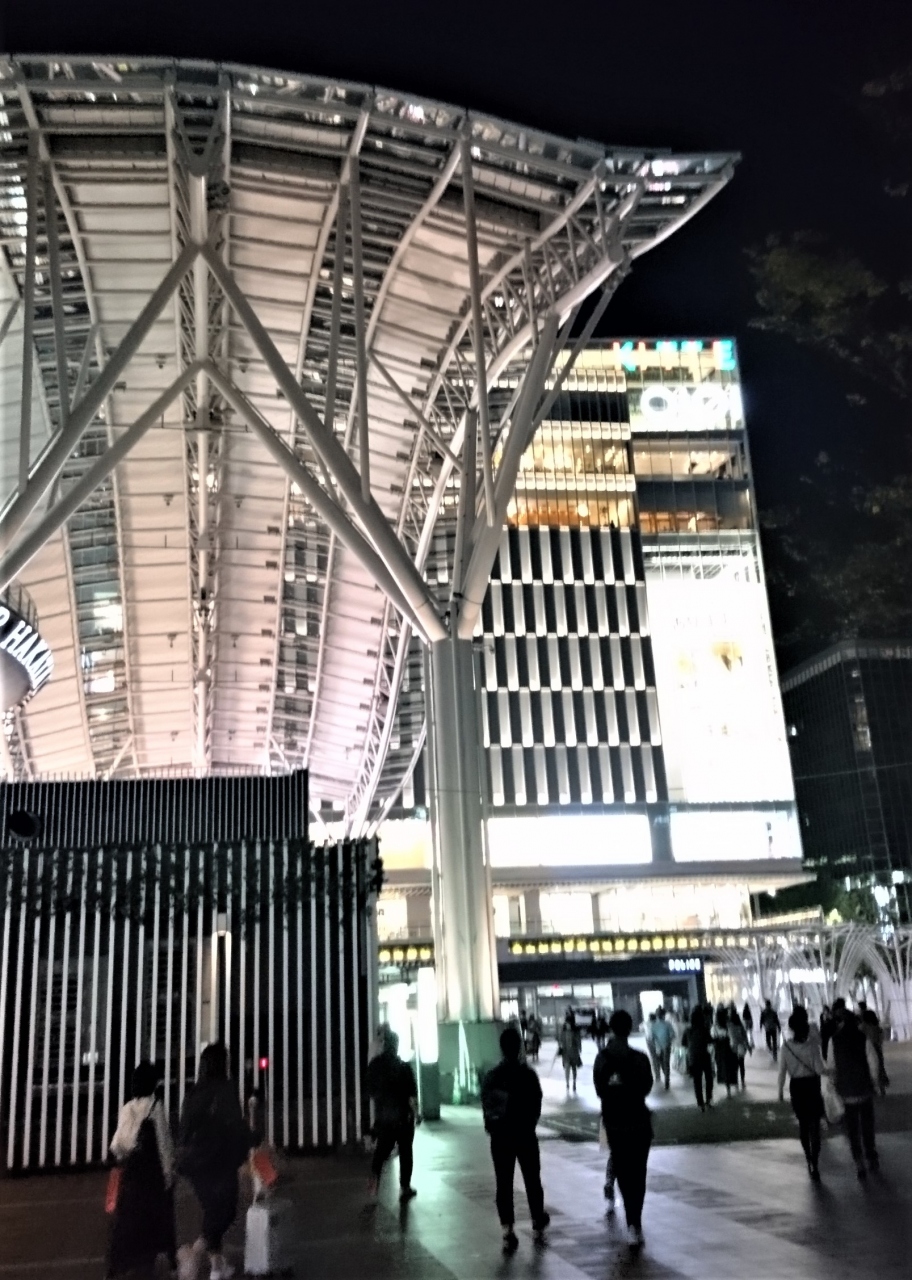 博多駅前の昔の中央郵便局舎が改築してKITTE博多になった。東京のKITTEと違うところは全くの新ビルで昔の建物の痕跡がないこと。博多駅周辺はしばらくご無沙汰だったので、夜になるとイルミネーションに浮かんでとても目立つので気が付いた。