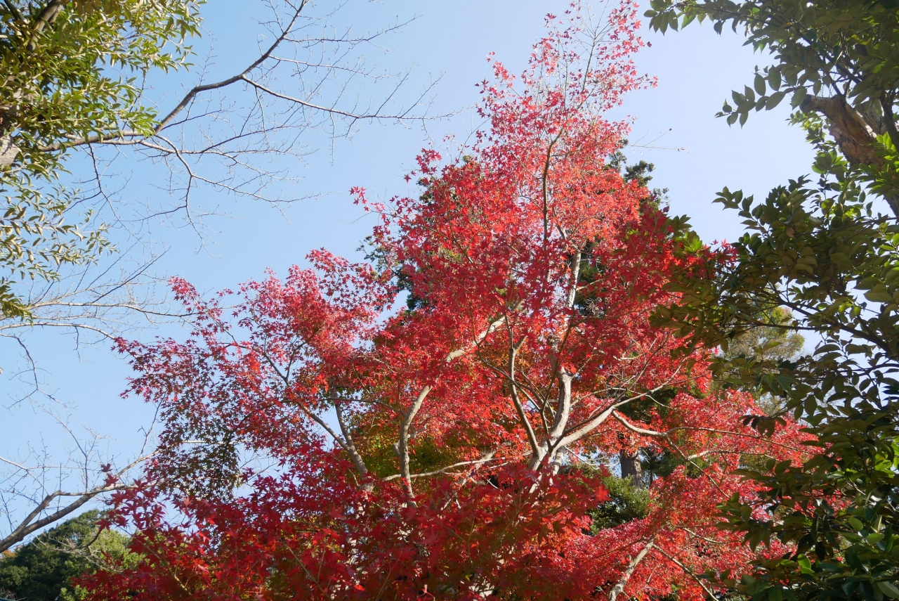 近くの駐車場の紅葉は早く見事