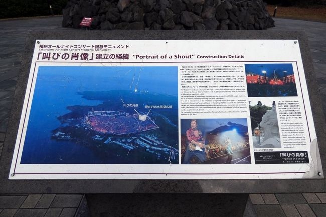 フォークソング歌手の長渕剛さんがオールナイトコンサートをした場所だそうで、それを記念した叫びの肖像という、桜島溶岩を使ったモニュメントが建てられています。