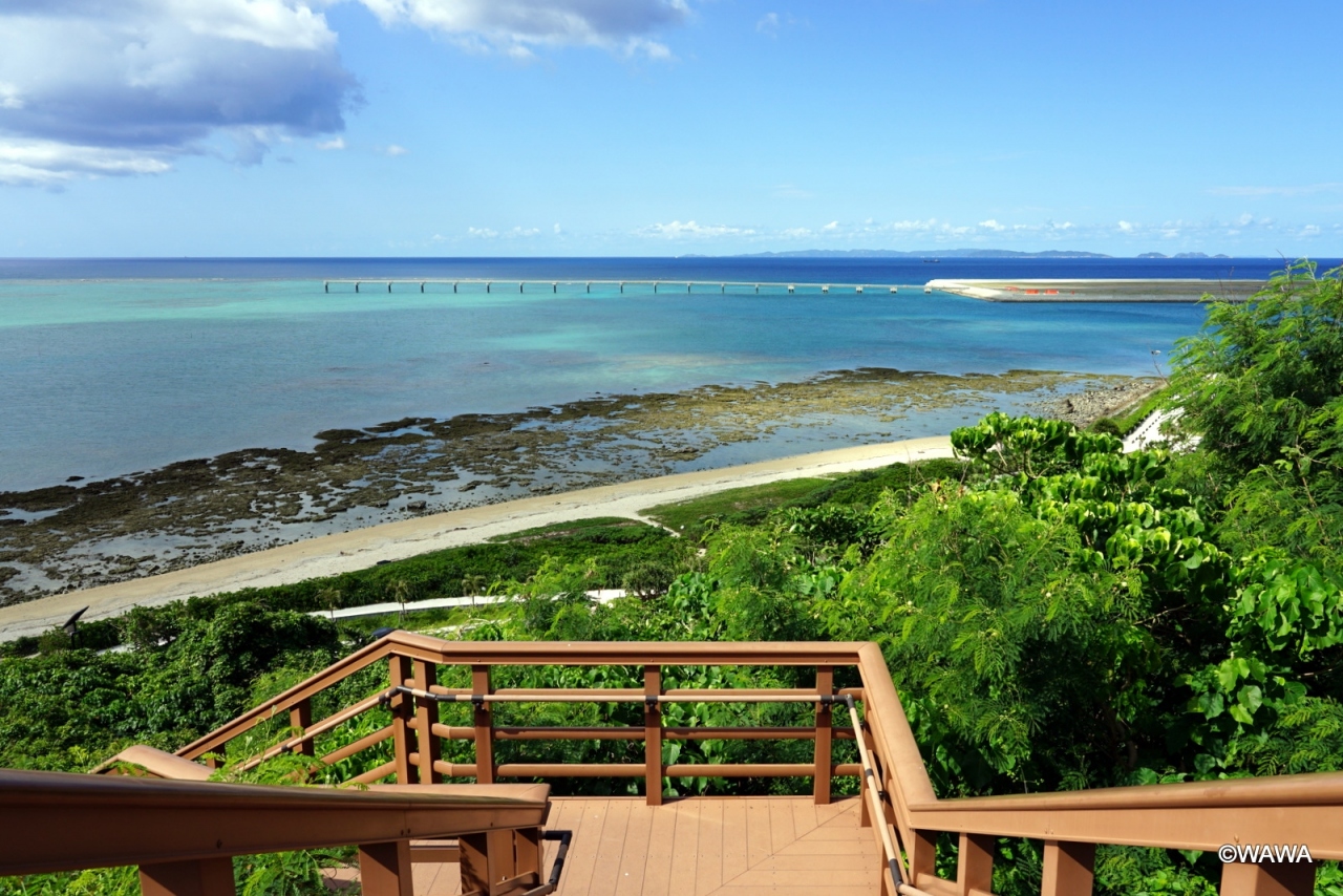天気も良かったのでレンタカーを借りてすぐ瀬長海中道路(無料)を通って瀬長島へ渡りました。4トラに観光ポイントとして登録されていませんが、島中央の高台にある瀬長島展望エリア(瀬長島サンセットパーク)から、海、ビーチはもとより、飛行機の離着陸、滑走路、那覇空港などの眺めを楽しみました。