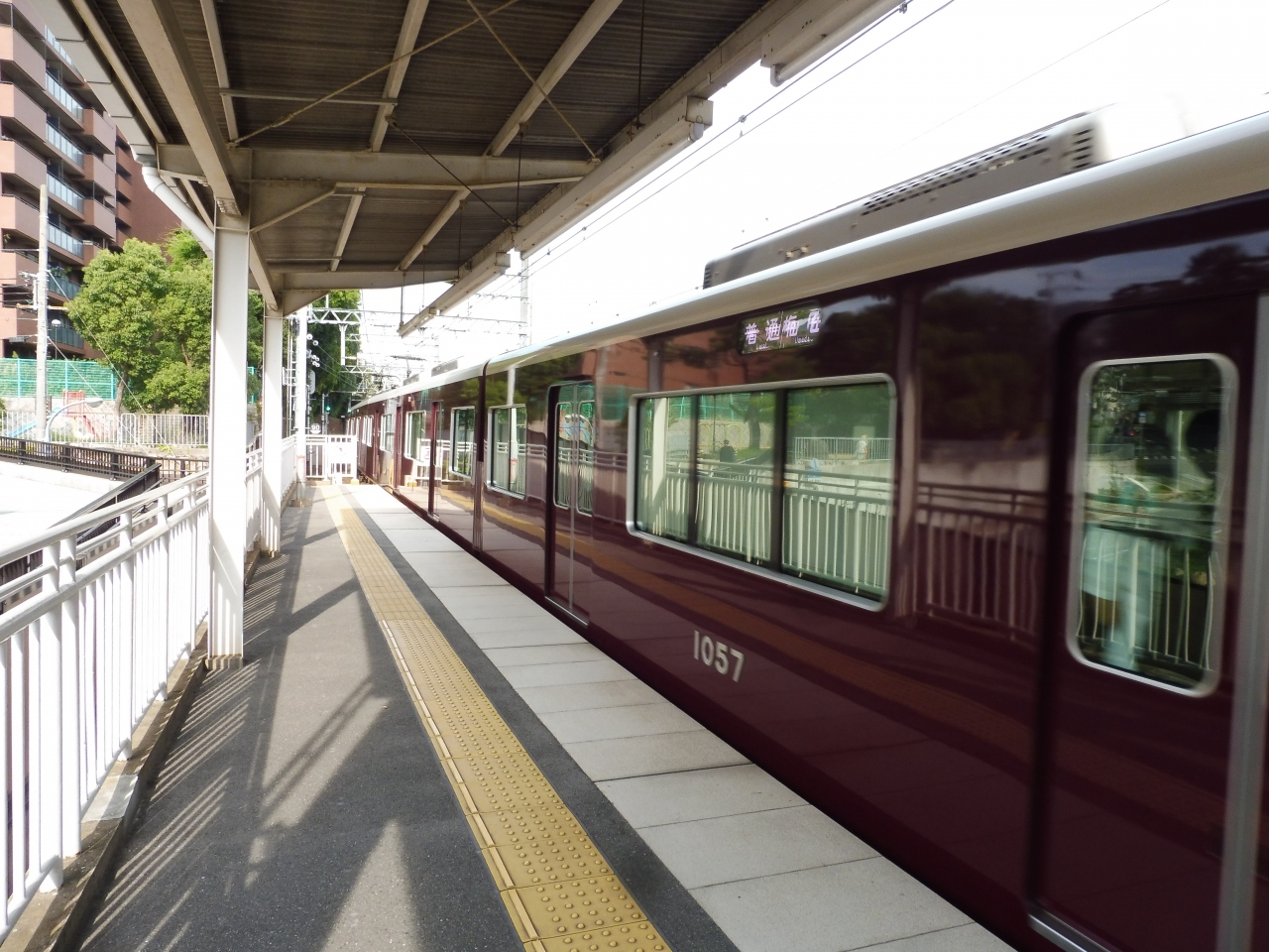 マルーン色の車体が大阪梅田から京都河原町・宝塚・神戸三宮三方向に伸びますが今回利用したのは阪急神戸線です。