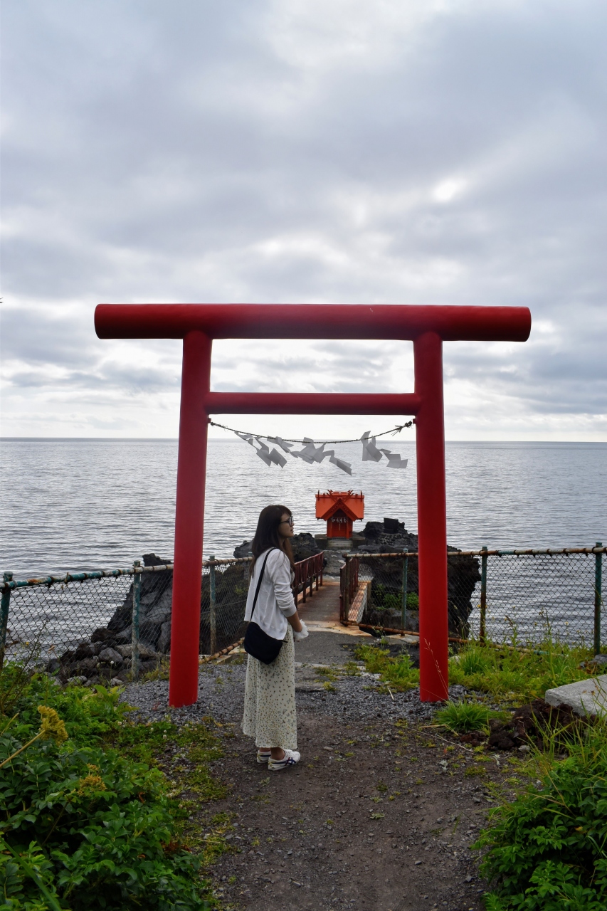 利尻島の西岸中ほどに突如現れる鳥居と祠。