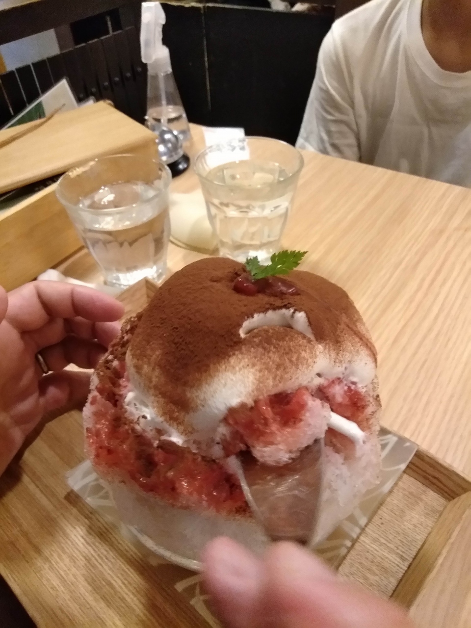 かき氷を食べました。お団子の方が有名なようです。それぞれ仕様が違っていて見た目も味も楽しめました。ほうじ茶はバーナーであぶって焦げ目をつけていただきます(ほうじ茶+ロースト感で合うと思います)。他ミントチョコ、ティラミス、桃、など。シロップでなく、ムース?クリームがかかっているかき氷です。美味しかったですし、場所的にもちょっと散策の休憩に良いと思います。