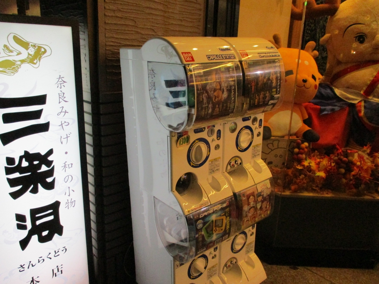 奈良の定番おみやげが勢ぞろいしたような大きなお店です。ビニールの鹿人形、鹿ぬいぐるみ、キーホルダー、スノードーム、マグネット、和雑貨など。見ていると楽しくなるお店です。お店はとてもきれいで新しいかんじですが、どこか懐かしい商品ラインナップです。