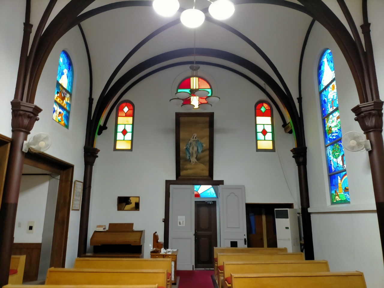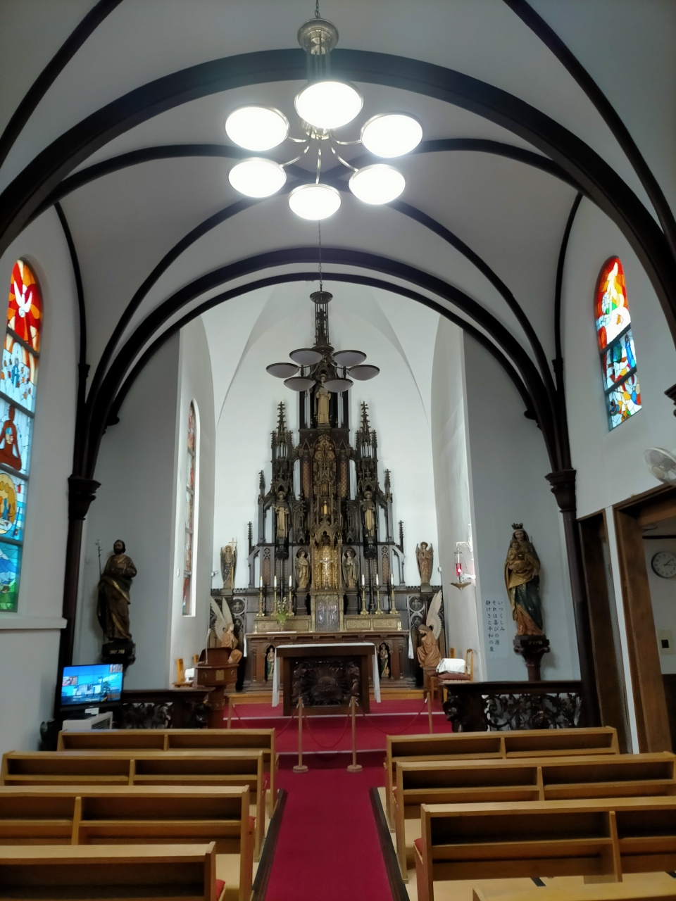弘前には3つの素敵な照会がありますが、そのうちの一つ、弘前カトリック教会は外観を見る限りそんな古い建物には見えませんでしたが、明治43年に当時の主任司祭モンダナ神父のもと改築されたもので、設計はオージェ神父、施工は青森県で多くの洋風建築を手がけた大工棟梁・堀江佐吉の弟で、クリスチャンであった横山常吉が請け負ったそうです。
