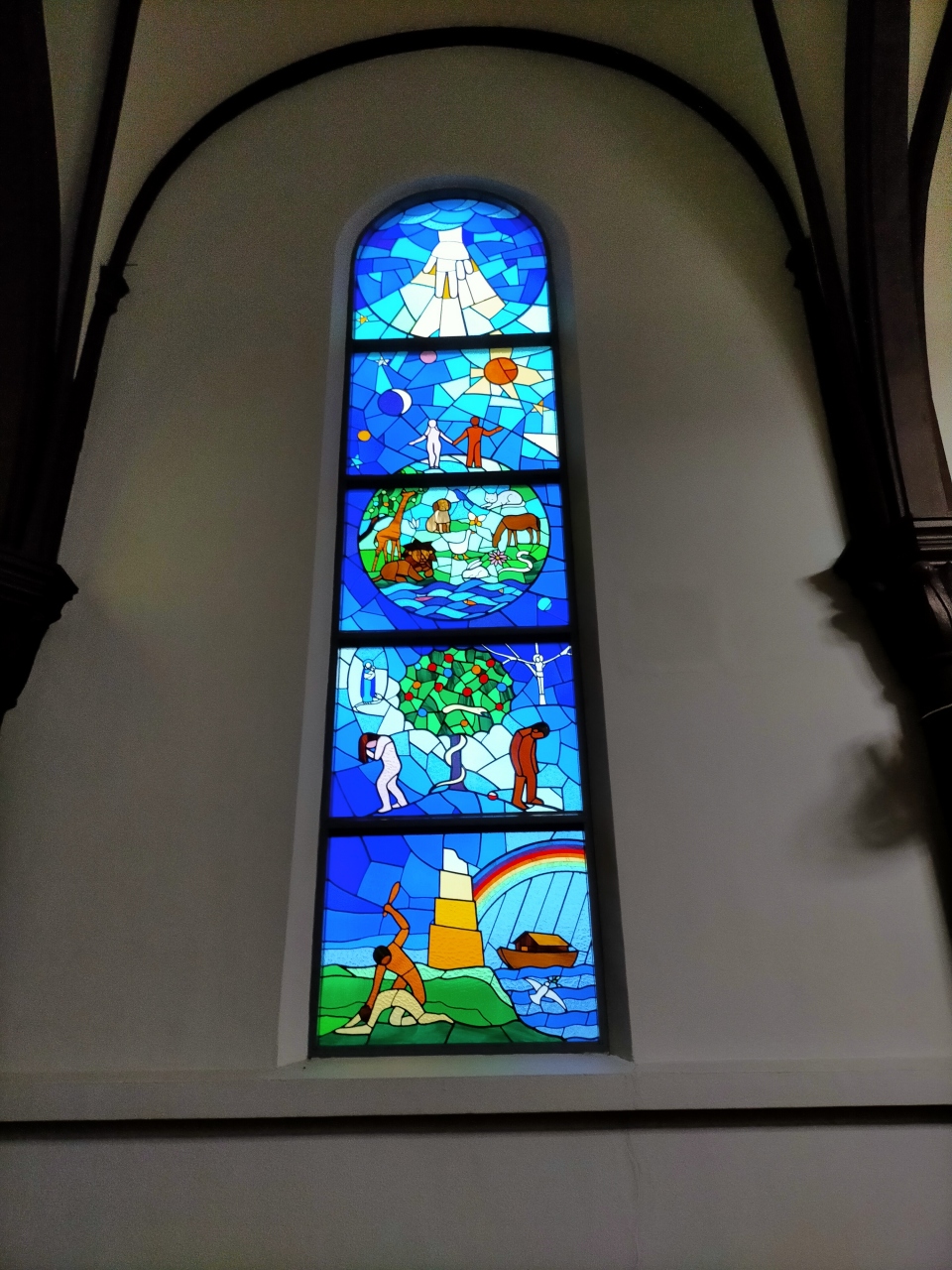 ステンドグラスにはリンゴや岩木山なども描かれていました。