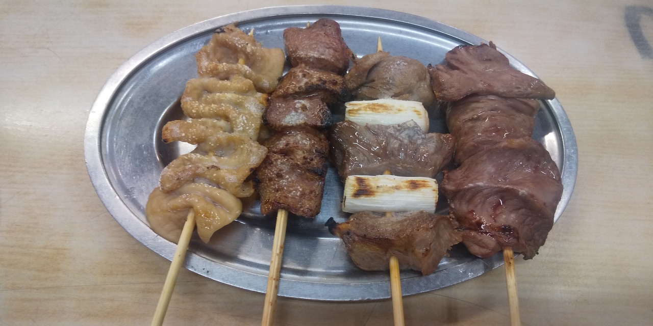 もつ焼きは4本。