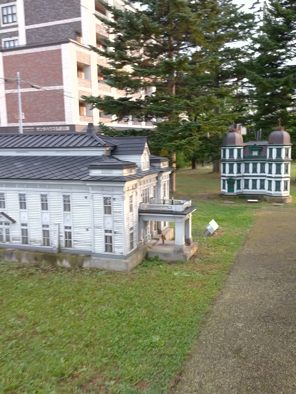追手門広場内の旧東奥義塾外人宣教師館の裏手には明治時代・大正時代に実際に弘前市内に建っていた14棟の建物を10分の1のサイズで再現している「ミニチュア建造物群」があります。