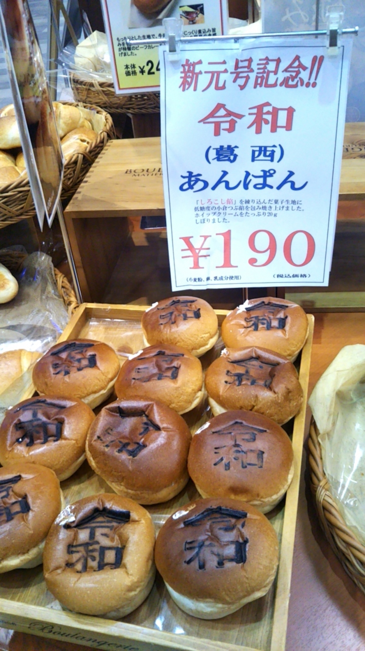 東京・葛西の「アリオ葛西店」に出店している『サンブーランジュリ 葛西店』にて『令和(葛西)あんぱん』が販売されていました。中身は、一番人気の葛西あんぱんと同じですが、新たな元号が明記されているだけで、気持ちも新たにちょっと嬉しくなります。