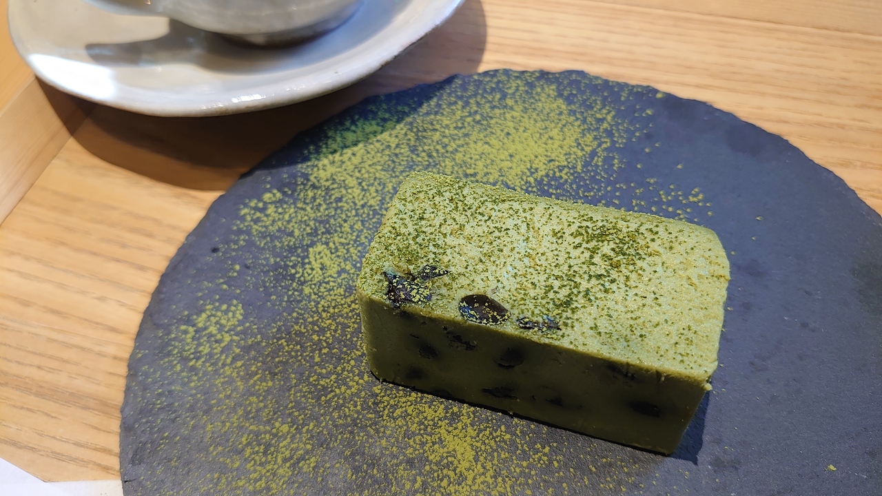 濃厚な抹茶の味の中にチーズケーキの味わいがして何とも贅沢で上品な味。