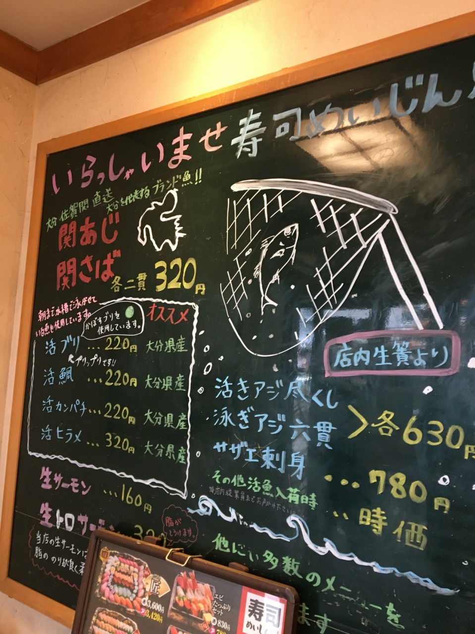 お店は老若男女問わず利用しやすいタイプで、家族連れが多かったです。寿司はお皿ごとに金額が変わるタイプで220円が多かったでしょうか。関サバや関アジ、カボスぶりなど地元名産品も数多くありました。どれも東京の回転寿司店に比べたら比較にならないほど、新鮮で美味しかったです。