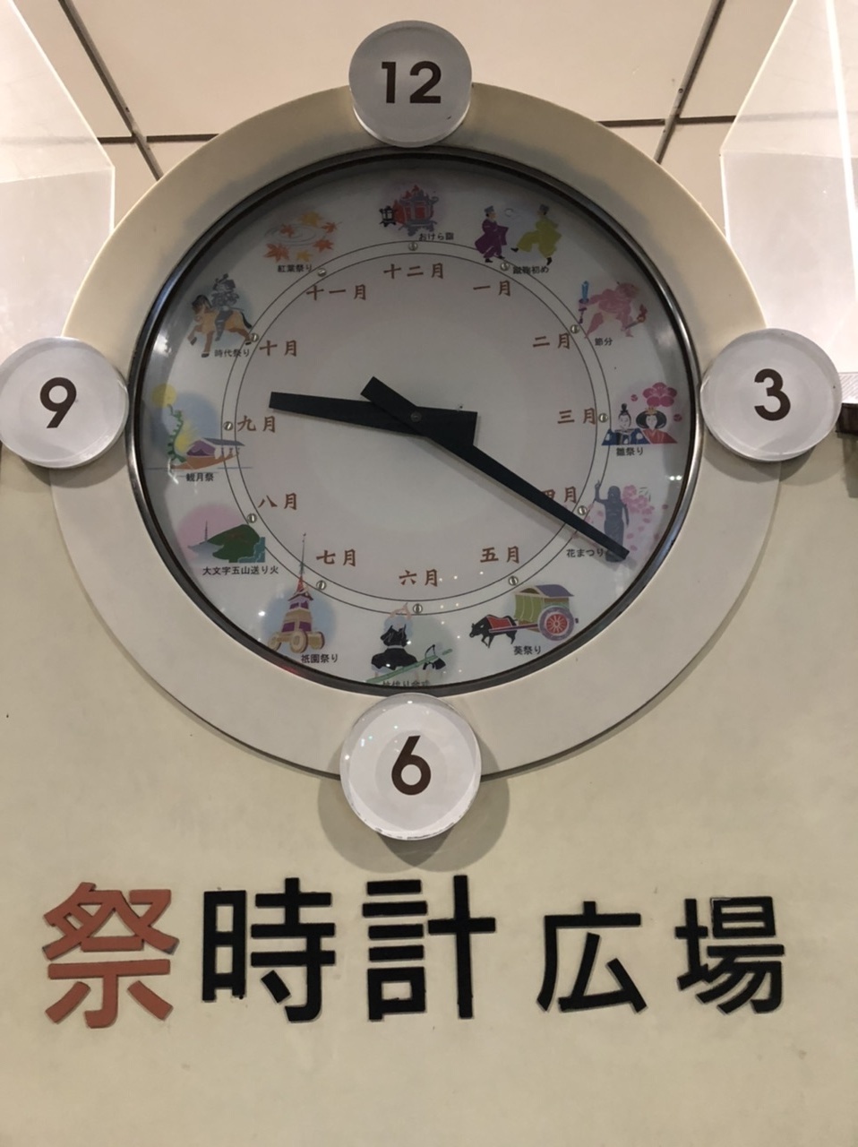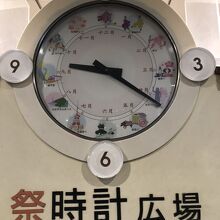 さほど目立つ広さはありませんが、確かに時計が設置されていて、京都のいろいろな祭りが描かれています。待っている時間に眺めるのも楽しいかも。