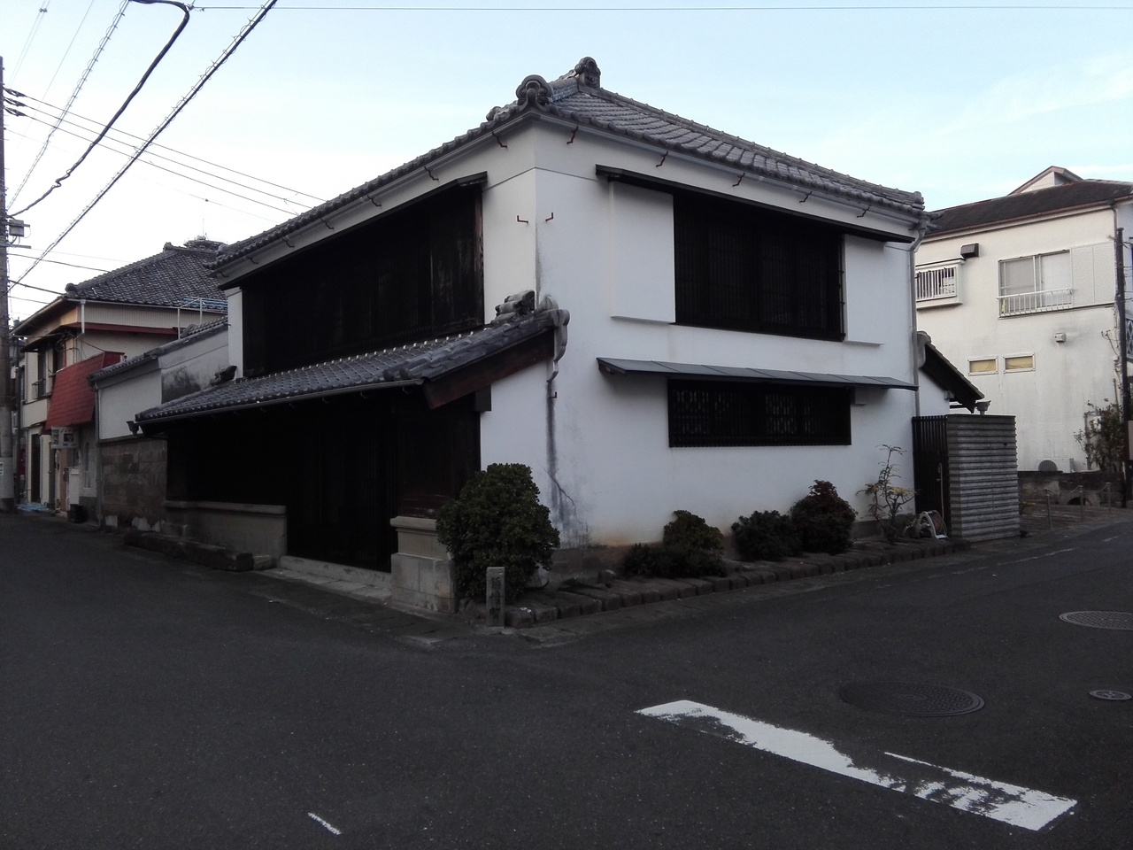 下田まちあるきマップには、なまこ壁の家となっています。大きくて存在感ある商家らしいなまこ壁の建物です。何度も手を入れているようで、真新しい色合いで保存されていますが、150年以上前の建築物と思われます。道を挟んである建物も同様です。港町だったところに見られた廻船問屋の羽振り良さが現れています。