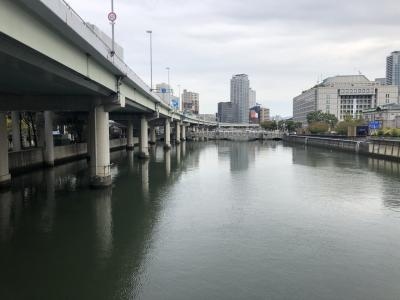堂島川、渡辺橋と大江橋の間くらいにかかっているシンプルだけどおしゃれな橋、たもとにはお米のオブジェがありましたが堂島米市場の跡地記念碑だそうです。