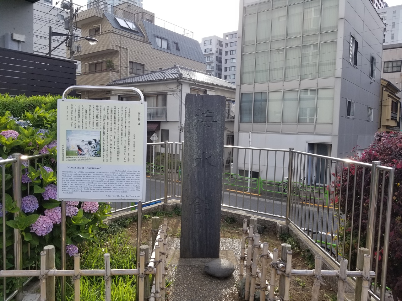 佃島にある海水館の碑。
