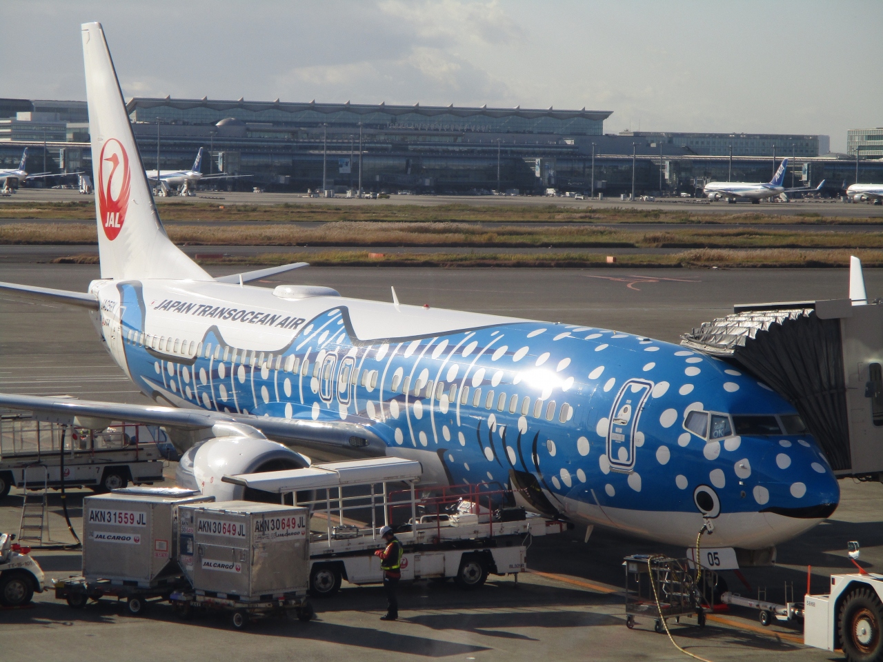 JALのコーヒーがまずかったので、口直しに立ち寄りました。三連休中日の昼すぎだったので、ガラガラで、広くて解放的なスペースで、スマホを充電しながら、カプチーノを美味しくいただきました。窓の外にはちょうどジンベェジェットがとまっていました。