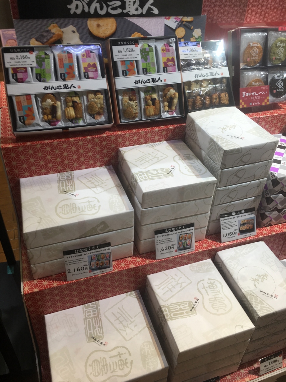 正面の出入口が広く左右からも出入り出来、ドア等の敷居がないので気軽に出入りできる店です。がんこ職人という、おかきは3種類あり、パッケージが白い色で高級感があったので購入しました。弁当も売っていましたが少し高めの値段設定でした。