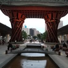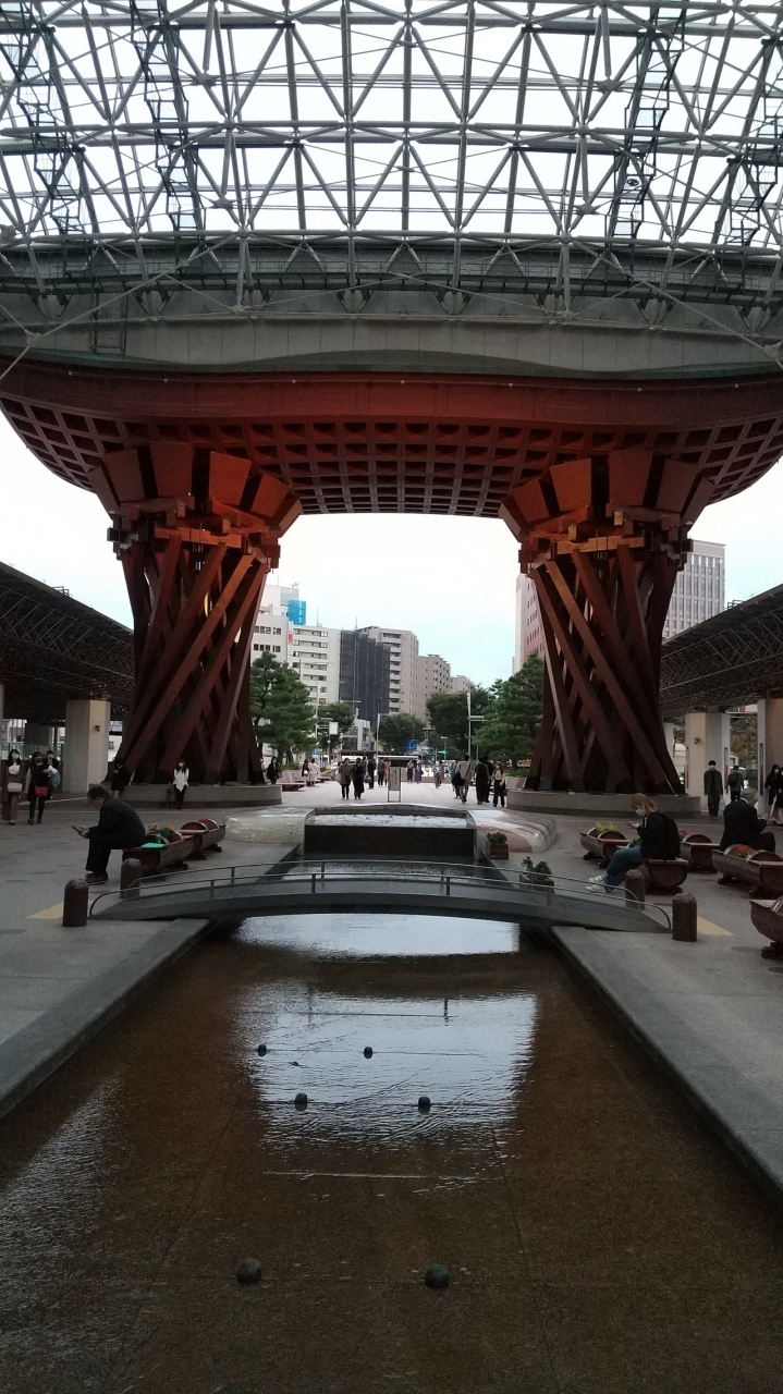 金沢駅の鼓門のすぐ横にあるバスターミナルで、路線によって乗り場が細かく分かれているのでわかりやすいです。駅を出たすぐ正面には地図や時刻の画面もあり、観光客にもわかりやすくしている工夫が感じられました。通勤通学の時間帯にはたくさんに人で行列していました。