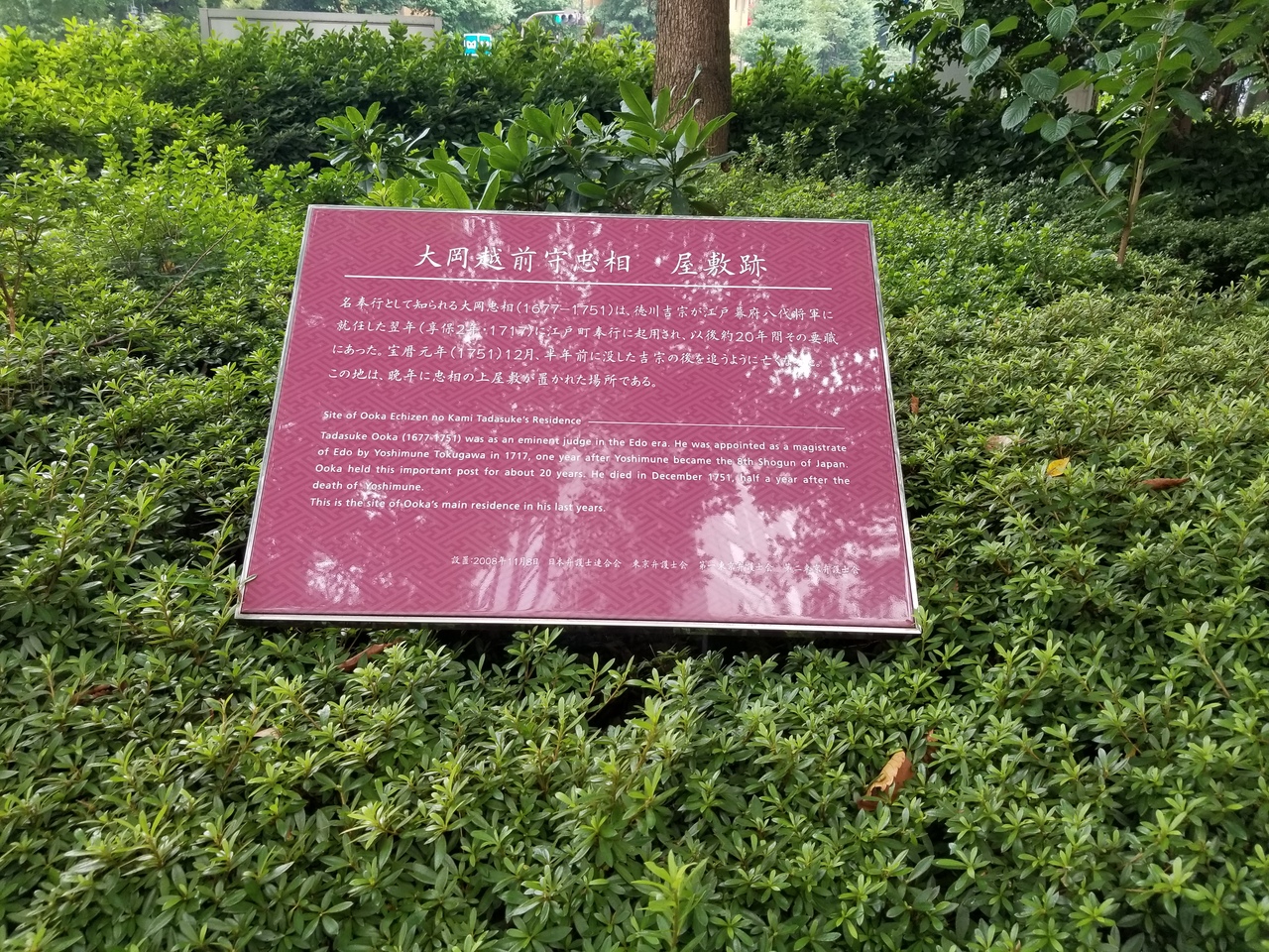日比谷にある大岡越前忠相屋敷跡。