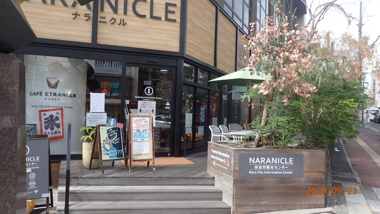 JR奈良駅に建物自体が観光スポットのような奈良総合観光案内所が有るので、この「奈良市観光センター」は入り口や外観がカフェのようで、最初は観光センターとは思えず「案内プレート」を二度見して確認しました。