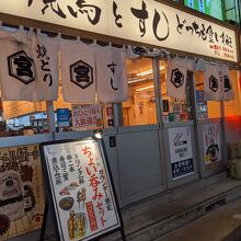 京成船橋駅前にある居酒屋です。大衆的な雰囲気のお店なので気軽に利用することができます。このお店では、リーズナブルな値段で焼き鳥とお寿司を食べることができるのでお薦めです。ちょい呑みセットなら焼き鳥(2本)、お寿司(3貫)、煮込みとワンドリンクで1000円とお得です。