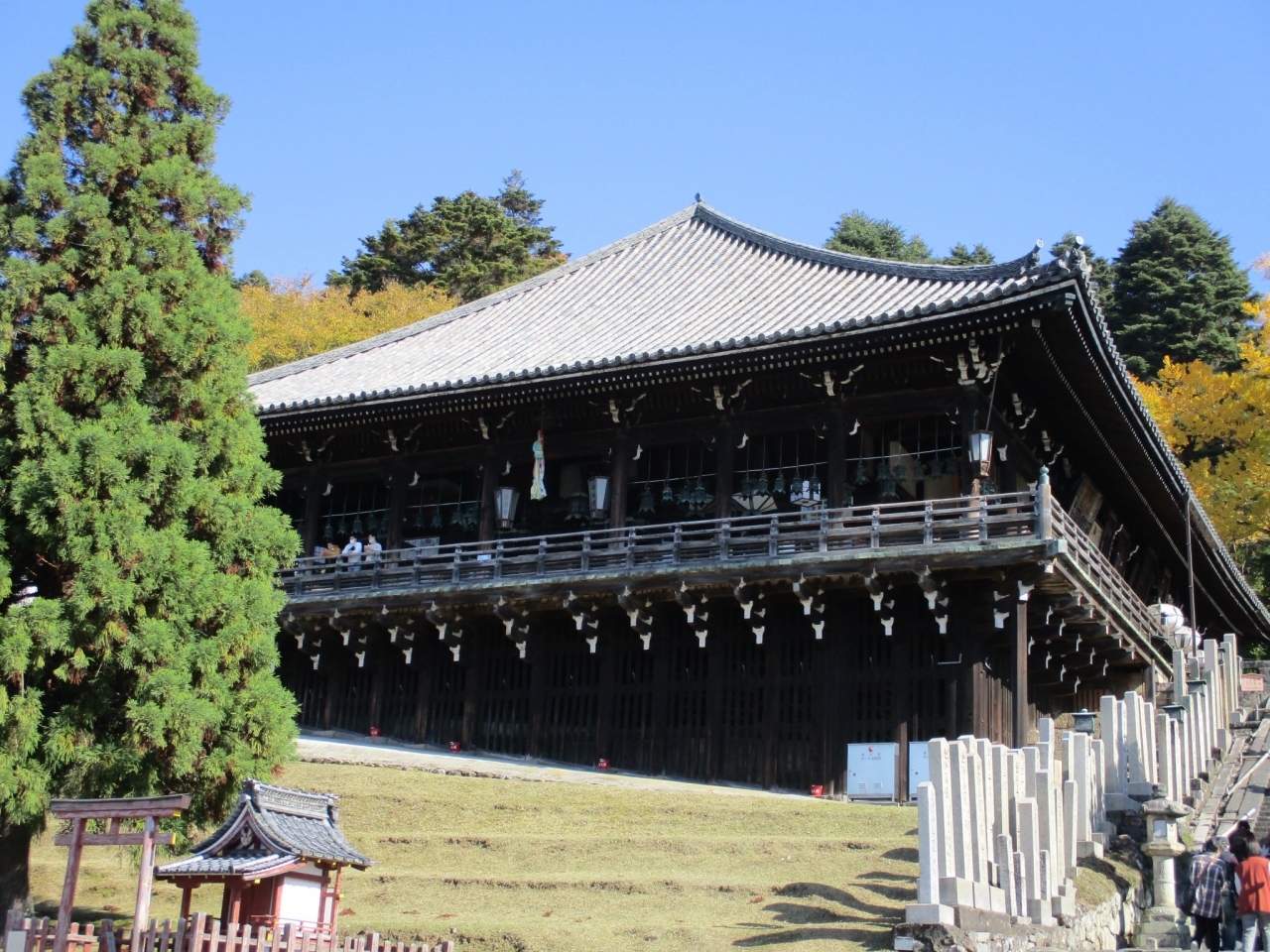 東大寺 大仏殿の東エリアにあります。二月堂はこのエリアで一番大きなお堂です。(国宝)清水の舞台に似ていると思いました、上ろうか迷いましたが、今回は下からのみ見ました。多くの人が景色を眺めているのが見えました。かなり遠くまで一望できるようです。石段がちょっと急で大変そうですが、次機会があれば上ってみたいです。