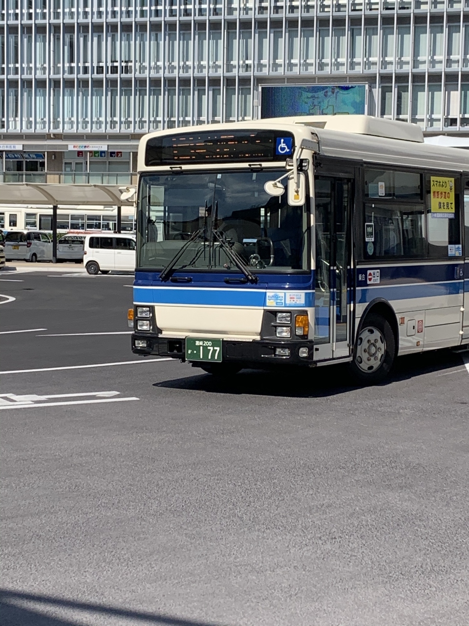 宮崎県内を走っている白地にブルーのラインの【 路線バス(宮崎交通) 】