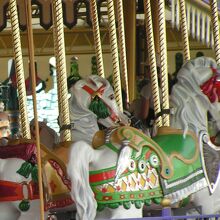 シンデレラ城のすぐ真後ろにあるメリーゴーランドで、馬や馬車のメリーゴーランドがあるので小さい赤ちゃん連れでも乗ることができます。本格的な大きなメリーゴーランドで、音楽や光もきれいで、回転しながらシンデレラ城を眺められてすごくきれいで楽しいです。