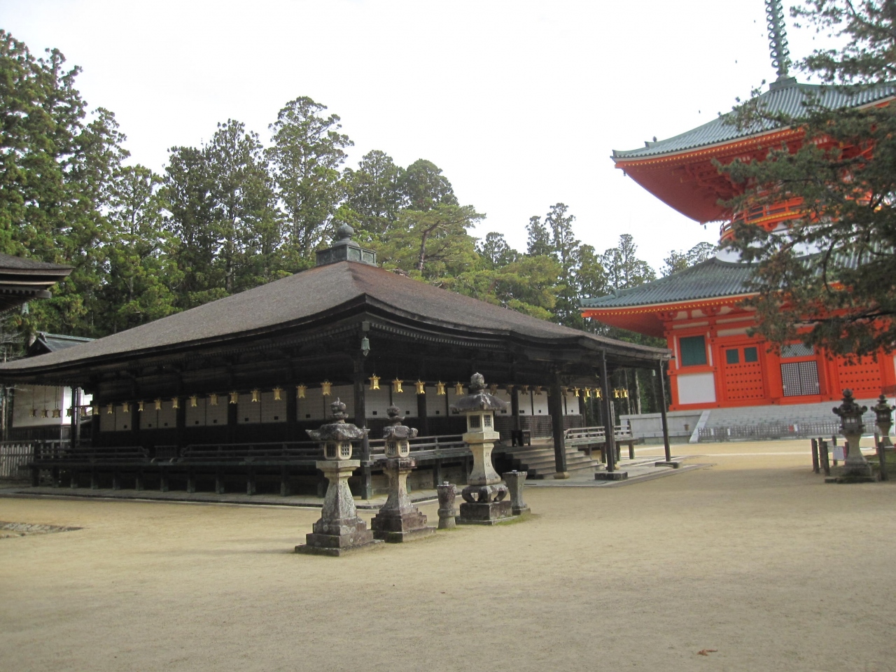 壇上伽藍は、8世紀の始め、弘法大師が高野山で最初に開いた地で、密教思想に基づき高野山の総本山の金堂、大塔、西塔、僧房を建立したとのこと。
