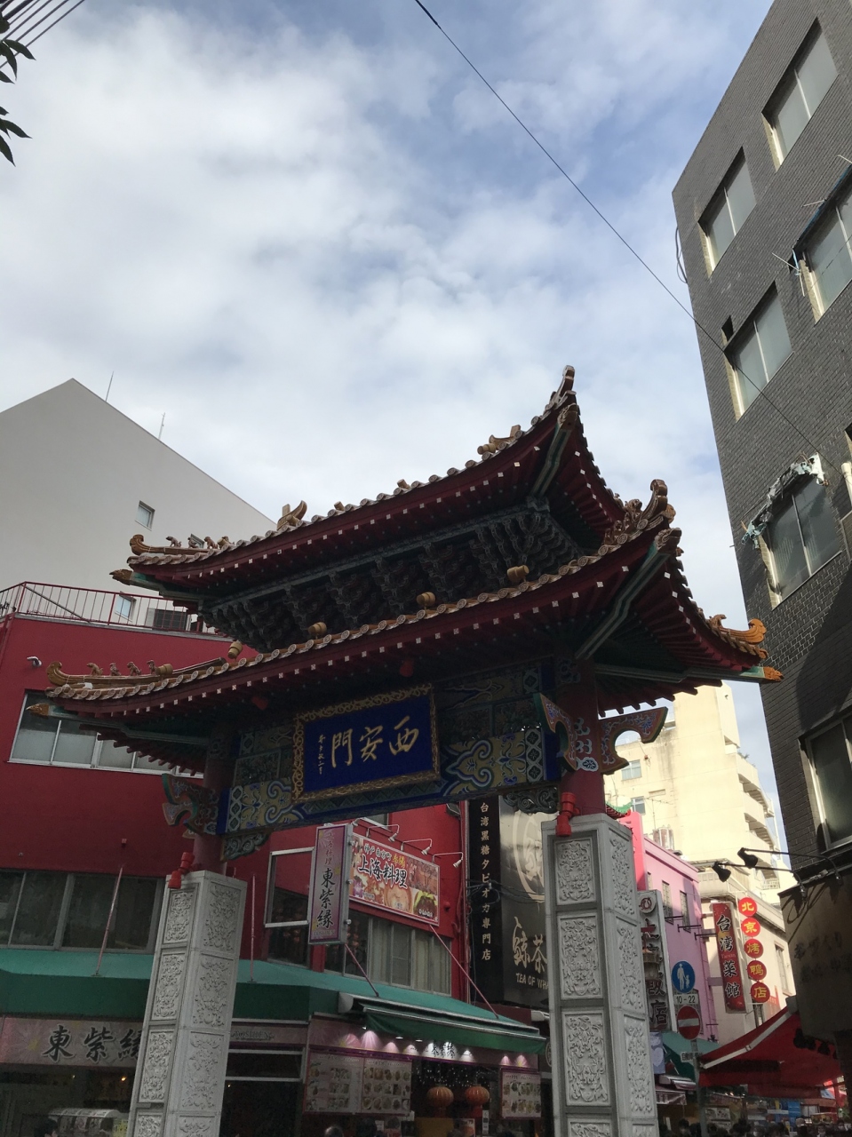 屋根の下の看板あたりの部分には、鮮やかな色で彩られていて、中国っぽさを感じる色のデザインになっています。