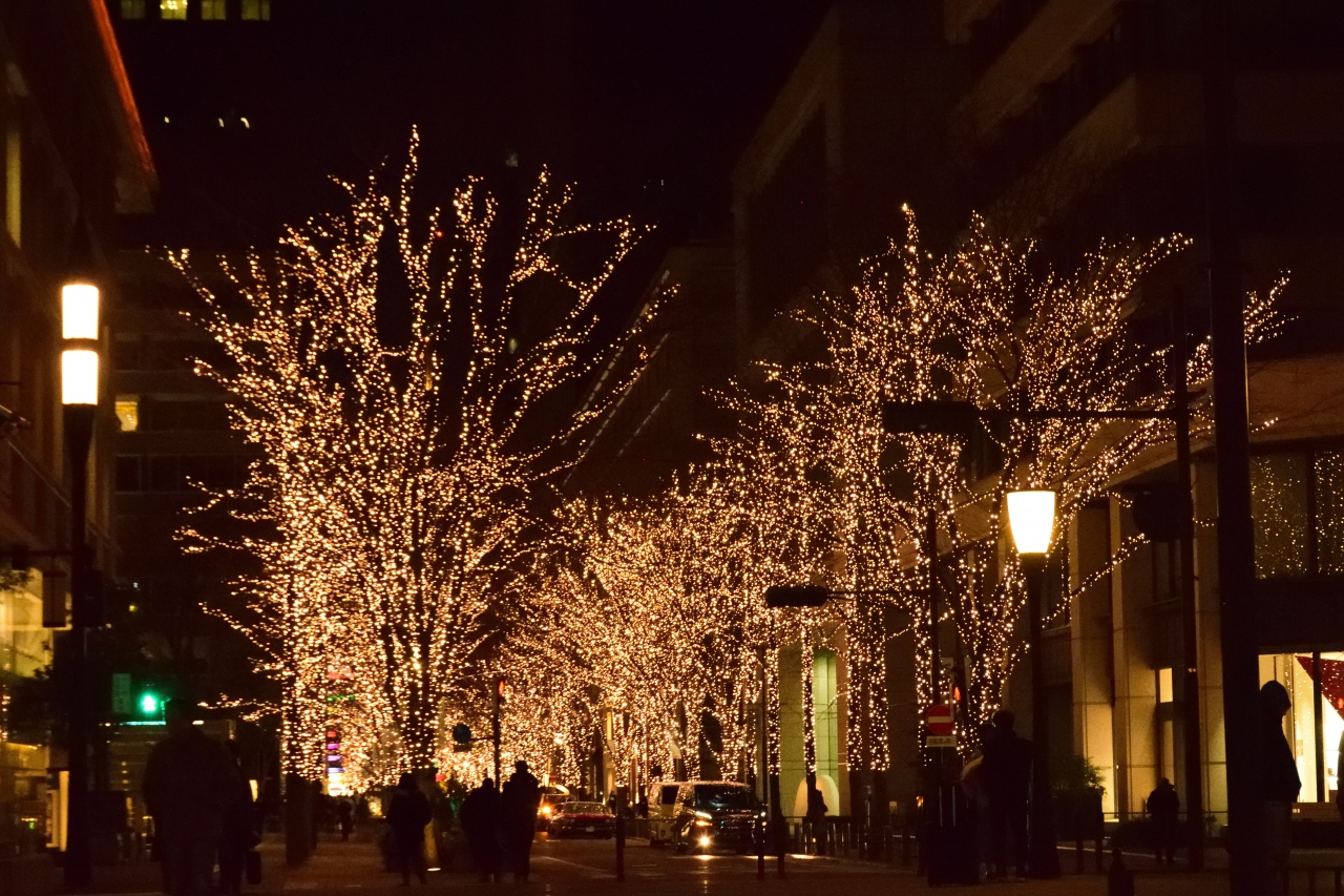 東京駅に寄ったついでに見たイルミネーションです。丸の内の通りの端から端まで街路樹がイルミネーションに包まれています。夜になると暗くなる通りがイルミネーションの光でとても明るく華やかになります。イルミネーションの規模は小さいですが、東京駅が近くアクセスしやすいイベントです。