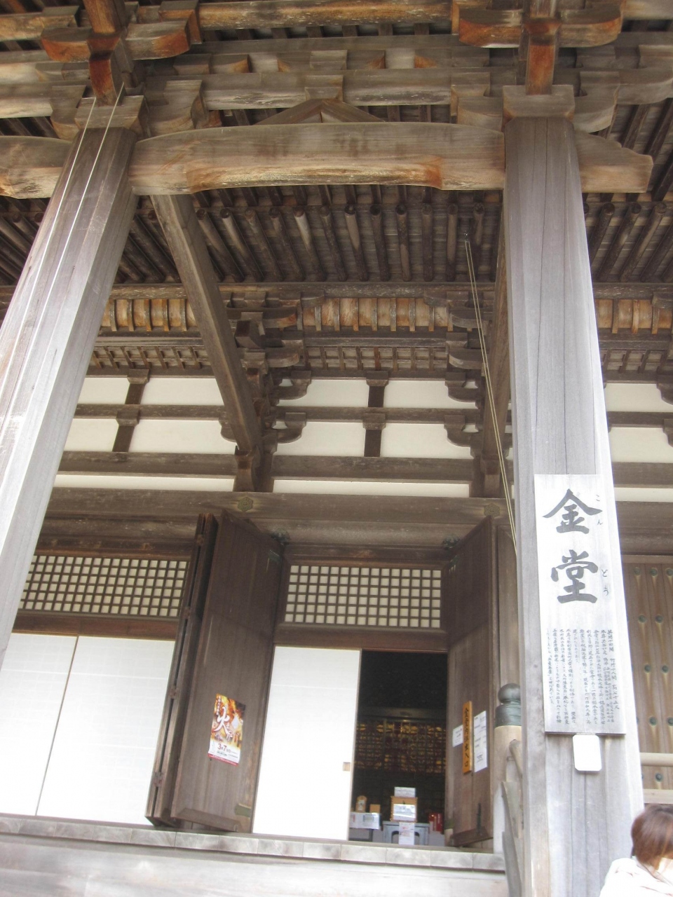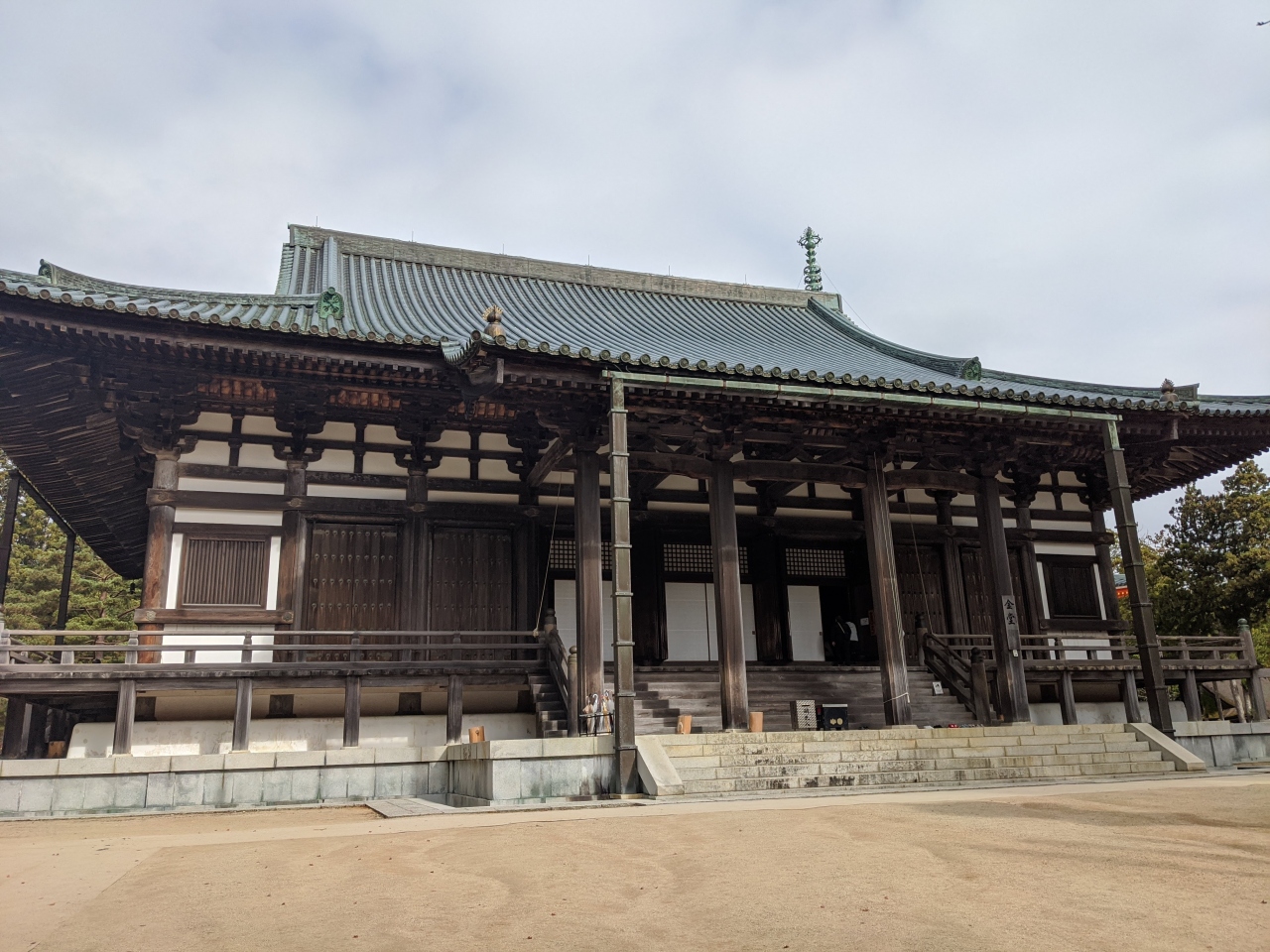 弘法大師が8世紀初めに講堂として建立し、後に「御願堂」、火災により銅瓦葺に再建されて「金堂」と現在の名を得たとのこと。