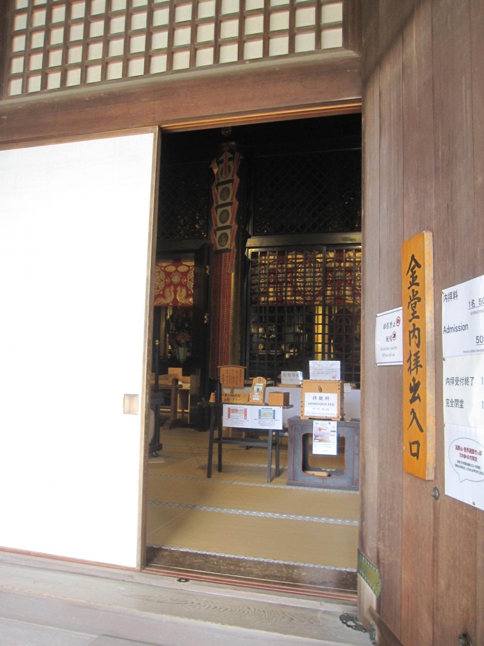 尚、堂内には有人の受付が無いので拝観料の500円は、セルフで専用賽銭箱へ投入します。