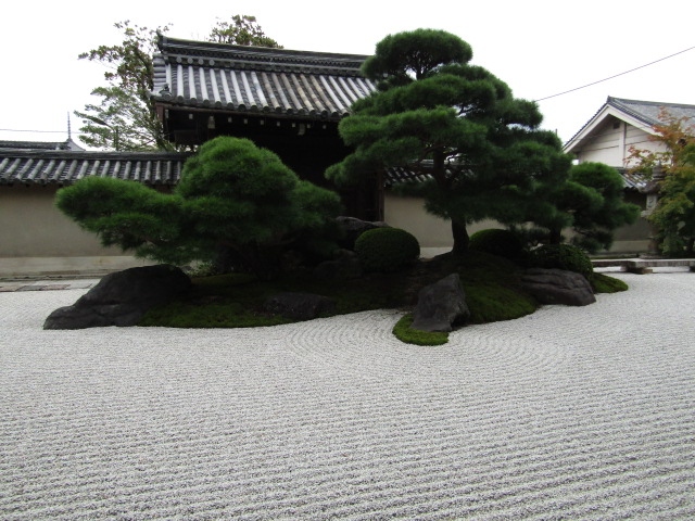 観智院の客殿は桃山時代の書院造りで国宝に指定されていますが、空海が唐から帰還する様子を表している「五大の庭」や「四方正面の庭」と呼ばれる枯山水庭園は、特別拝観中でも足を止める人は少なく、縁側に座ってゆっくり眺めることができました。